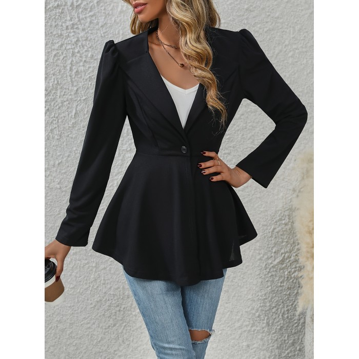 Button Front Flared Blazer, Elegant Notched Collar Long Sleeve Blazer For Office & Work, Women's Clothing